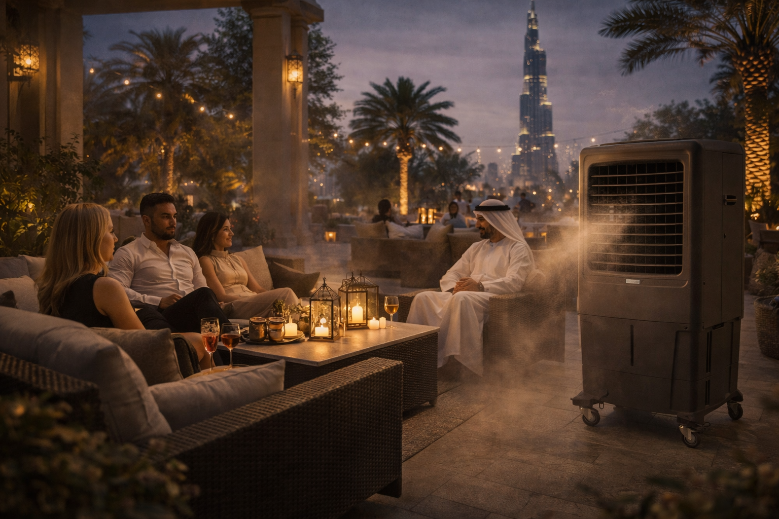 Equipos portátiles de refrigeración que aportan frescor inmediato en espacios exteriores o semiabiertos, ofreciendo una solución flexible y discreta.